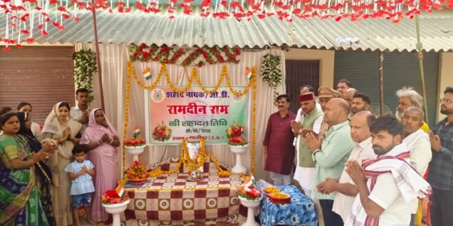गाजीपुर। शहीद रामदीन राम कश्यप के शहादत दिवस पर श्रद्धा सुमन अर्पित किया गया। अमर शहीद रामदीन राम कश्यप ग्राम बरहपुर निवासी ने मणिपुर में सीआरपीएफ की 46वीं बटालियन को उग्रवादी संगठनों के खिलाफ आतंकवाद विरोधी अभियान चलाने के लिए तैनात किया गया था यह संगठन पूरे राज्य में फैल गया था। 9 जून 1998 को उग्रवादियों ने एक स्कूल पर हमला किया घने जंगलों और पहाड़ी इलाकों का फायदा उठाकर एक सीआरपीएफ गश्ती दल ने शुरुआती हमले में नजदीकी दूरी पर भीषण मुठभेड़ किया जिसमें शहीद एल/एनके रामदीन राम शहीद हो गए। आज परिवार और आस पास के सामाजिक प्रबुद्धजनों ने शहीद कश्यप को श्रद्धासुमन अर्पित की और सरकार द्वारा इस वर्ष निर्णय लिया गया कि बटालियन के अधिकारी शहीद परिवार के घर वालो को डिपार्टमेंट की तरफ से सम्मानित किया जाएंगा इसी के परिपेक्ष में इस अवसर पर चंदौली के चकिया हेड ऑफिस के सबइंस्पेक्टर नारायण सिंह शहीद के धर्मपत्नी सावित्री देवी को साड़ी और फल भेंट और शहीद की प्रतिमा भेंट करके सम्मानित किए। इस अवसर पर कोटा ग्लोबल स्कूल की प्रिंसिपल पुनीता सिंह खुसबू , सावित्री बालिका इंटर कॉलेज के प्रबंधक संतोष सिंह,यादव, समाजसेवी शिव प्रसाद सिंह ,नन्हे सिंह ,बरहपुर प्रधान प्रतिनिधि कुश सिंह, पूर्व प्रधान मुन्ना सिंह ,भारत विकास परिषद के सदस्य बुलुबल सिंह, मुन्ना चौबे ,शहीद के भाई प्रेम चंद कश्यप, लक्ष्मी कश्यप ,सोनी कश्यप ,राम नाथ आदि लोग उपस्थित थे।”
