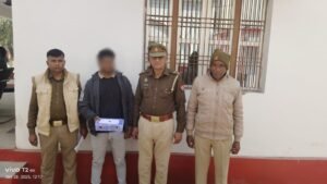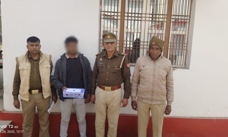 गाजीपुर।अपराध एवं अपराधियों के विरुद्ध चलाये जा रहे अभियान के तहत उ0नि0 नन्दलाल मिश्र थाना दिलदारनगर मय हमराह चेकिंग के दौरान *रक्सहाँ बाईपास चौराहा वहद ग्राम रक्सहा* के पास अभियुक्त *मु0 चांद पुत्र स्व0 असलम शाह* निवासी दिलदारनगर गाँव थाना दिलदारनगर जनपद गाजीपुर उम्र करीब 26 वर्ष के कब्जे से एक अदद अवैध तमंचा .315 बोर, एक अदद कारतूस .315 बोर के साथ गिरफ्तार किया गया । उक्त बरामदगी के आधार पर थाना स्थानीय पर *मु0अ0स0 16/2025 धारा 3/25 A Act* पंजीकृत कर अग्रिम विधिक कार्यवाही की जा रही हैं ।