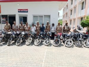 गाज़ीपुर।अपराध एवं अपराधियों के विरुद्ध चलाये जा रहे अभियान के तहत आज दिनांक *26.06.2025* को प्रभारी निरीक्षक थाना कोतवाली मय टीम द्वारा मुखबिर सूचना के आधार पर *बिलैचिया मोड़ तिराहा के पास से* अभियुक्तगण 1 *.बिट्टू कुमार पुत्र गुड्डू राम* निवासी ग्राम बहलीपुर थाना सरायलखंसी जनपद मऊ *2. नफीस अंसारी पुत्र पप्पू अंसारी(मिस्त्री)* निवासी शेखपुरा थाना कोतवाली गाजीपुर एवं *3.रवि कुमार बिन्द पुत्र सिंहासन बिन्द* निवासी ग्राम चकिया थाना सुहवल जनपद गाजीपुर को गिरफ्तार किया गया एवं इनके पास से चोरी की 02 मोटर साइकिल व अभियुक्त बिट्टू कुमार के पास से एक तमंचा 315 बोर व 01 अदद जिंदा कारतूस व अभियुक्त रवि बिन्द के पास से एक अदद तमंचा व 01 अदद जिंदा कारतूस .315 बोर बरामद हुआ एवं अभियुक्तगण द्वारा चोरी की अन्य 09 मोटर साइकिल अंधऊ हवाईपट्टी के पास थाना कोतवाली जनपद गाजीपुर से भिन्न भिन्न स्थान से बरामद कराया गया । जिसके सम्बन्ध मे थाना स्थानीय पर *मु0अ0सं0 456/2025 धारा 317(2),317(4), 317(5),319(2), 318(4) BNS व 3/25 आयुध अधिनियम* पंजीकृत कर अग्रिम विधिक कार्यवाही की जा रही है ।