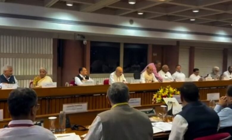 करीब डेढ़ घंटे तक चली इस अहम बैठक में गृहमंत्री अमित शाह, विदेश मंत्री एस जयशंकर, कांग्रेस नेता मल्लिकार्जुन खड़गे, विपक्ष के नेता राहुल गांधी, AIMIM प्रमुख असदुद्दीन ओवैसी समेत कई दलों के वरिष्ठ नेता मौजूद थे।