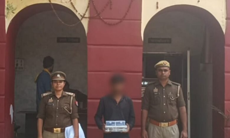 गाज़ीपुर अपराध एवं अपराधियो के विरूद्ध चलाये जा रहे अभियान के तहत दिनांक 03.11.2025 को उ०नि० मनोज कुमार पाण्डेय मय हमराह द्वारा देखभाल क्षेत्र व रोकथाम जुर्म जरायम में कस्बा सैदपुर में गश्त के दौरान नसीरपुर कट के पास से संदिग्ध प्रतीत हो रहे एक व्यक्ति प्रीतम गौतम पुत्र राजकुमार निवासी ग्राम जिवली थाना बरदह जिला आजमगढ उम करीब 21 वर्ष जो बिहार भागने की फिराक में था को गिरफ्तार किया गया। जामा तलाशी में जिसके कब्जे से कपडे के थैले से एक अदद तमंचा .315 बोर बरामद हुआ, बरामद तमंचे की नाल को सावधानी पूर्वक खोल कर देखा गया तो नाल में एक अदद जिन्दा कारतूस .315 बोर बरामद हुआ । प्रकरण में बरामदगी के आधार पर थाना सैदपुर पर मु0अ0स0 379/25 धारा 3/25 आर्म्स एक्ट का अभियोग पंजीकृत कर गिरफ्तारशुदा अभियुक्त के विरूद्ध अग्रिम विधिक कार्यवाही की जा रही है।