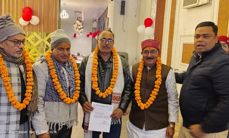 गाज़ीपुर 27 दिसंबर, 2025 (सूचना विभाग)। जनपद के शहर के एक प्रतिष्ठित प्रतिष्ठान में प्रगतिशील ग्रामीण पत्रकार एसोसिएशन की एक बैठक आहूत की गई। जिसमे संगठन के प्रदेश अध्यक्ष शशिकांत मिश्रा ने सर्व सम्मति से जनपद के वरिष्ठ पत्रकार विनोद पाण्डेय को मंडल अध्यक्ष मनोनीत किया।