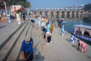 इसी क्रम में जनपद जौनपुर में प्रोजेक्ट अमृत के अंतर्गत 43 शाखाओं ने मिलकर 25 स्थानों पर अलग-अलग जगह नदी, घाट तालाबों पर सभी शाखाओं के मुखी, संचालक, क्षेत्रीय संचालक, शिक्षक सहित सेवा दल के भाई बहन और संगत के महात्मा स्वच्छता अभियान में सम्मिलित होकर सफाई का कार्य किये। शहर के गोमती नदी के तट *शाही पुल के पास हनुमान घाट* *एवं गोपी घाट के पास* श्री श्याम लाल साहू संयोजक व श्री अमरनाथ विश्वकर्मा जी क्षेत्रीय संचालक के नेतृत्व में सैकड़ो की संख्या में संत निरंकारी मिशन की सेवादार व श्रद्धालुओं द्वारा प्रातः 8:00 बजे से 11:00 बजे तक सफाई का कार्य किया गया। श्री राजेश कुमार प्रजापति (क्षेत्रीय संचालक,) ने शाहगंज क्षेत्र का नेतृत्व किये। यह केवल एक पर्यावरणीय प्रयास नहीं, बल्कि अध्यात्म, सेवा और सामाजिक उत्तरदायित्व का अद्भुत समन्वय था, जो जन-जन के अंतर्मन को स्पर्श करते हुए जागरूकता एवं कर्तव्यबोध की भावना को और अधिक सुदृढ़ बनाता है।