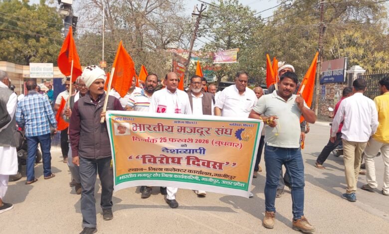 गाजीपुर। भारतीय मजदूर संघ अपने देशव्यापी अभियान के तहत जनपद मुख्यालय स्थित सरयू पाण्डेय पार्क में बुधवार को 19 सूत्रीय मांग पत्र सूबे के मुख्यमंत्री को संबोधित पत्र अपर जिलाधिकारी को सौपा गया। इसकी जानकारी देते हुए संघ के जिला मंत्री दीपक राय ने बताया कि भारतीय मजदूर संध एक राष्ट्रवादी संगठन है और पारस्परिक सहयोग के आधार पर कार्य करता है। आज मजदूर और कर्मचारी महंगाई, बेरोजगारी और सरकारी उपेक्षाओं के कारण अत्यंत परेशान है। आंगनबाड़ी बहनों के लिए सरकार के द्वारा तय किए गए मानदेय को भी नहीं लागू किया जा रहा है। आशा एवं आशा संगिनी बहनों के साथ भी पूर्ण रूप से अन्याय हो रहा है। संविदा कर्मियों को आउटसोर्सिंग के नाम पर उनको समय पर वेतन नहीं दिया जाता है तथा नौकरी से निकाले जाने का भय सदैव रहता है। उनके लिए कोई नियमावली भी नहीं बनाई गई है। सफाई कर्मचारी को बिना सुरक्षा उपकरण के ही कार्य कराया जाता है और उचित वेतन भी नहीं दिया जाता है। एनएचएम में कार्य कर रहे संविदा कर्मियों को बीमा का लाभ देने के लिए केंद्र सरकार से बजट मिला, लेकिन उसे भी अभी तक लागू नहीं कराया गया। स्थानांतरण का भय दिखाकर उनका शोषण किया जाता है। वेतन विसंगतियां पहले से ही विद्यमान है। 108 व 102 एंबुलेंस के बर्खास्त कर्मियों को वार्ता के बाद भी अभी तक वापस नहीं लिया गया। वो भुखमरी में जी रहे हैं। पटरी रेहाड़ी दुकानदारों को प्रतिदिन उत्पीड़न और जलालत झेलनी पड़ती है। असंगठित क्षेत्र में कार्य कर रहे दिहाड़ी मजदूर, ग्रामीण मजदूर, नाई, धोबी, दर्जी अन्य सभी को कोई सामाजिक सुरक्षा व प्रतिदिन भोजन की व्यवस्था भी नहीं है। सरकारी कर्मचारियों की बहुत समय से चली आ रही पुरानी पेंशन की मांग को सरकार ने अभी तक पूरा नहीं किया है। उसी के क्रम में 25 फरवरी 2026 को अपर जिलाधिकारी के माध्यम से आपको संबोधित 19 सूत्रीय यह ज्ञापन इस आपेक्षा के साथ प्रेषित है कि इन ज्वलंत समस्याओं पर विचार कर समाधान करने का कष्ट करें। आशा कर्मचारियों को सरकारी कर्मचारी घोषित किया जाये व उन्हें प्रोत्साहन राशि के स्थान पर मानदेय दिया जाये, आंगनबाड़ी कार्यकत्रियों व सहायिकाओं को सरकारी कर्मचारी घोषित करें और मानदेय में वृद्धि की जाये, प्रदेश की डिस्टिलरी एवं शुगर उद्योग में कार्यरत कर्मचारियों के त्रिपक्षीय समझौते का जल्द से जल्द निवारण कर आदेश जारी किया जाये, एनएचएम के सभी संविदा कर्मियों की बीमा, स्थानांतरण, वेतन विसंगतियों की समस्याओं का समाधान किया जाये। आयुक्त व निबन्धक सहकारिता उ.प्र. के निर्गत वेतनमान पुनरीक्षण व विसंगतियों का निराकरण करते हुए 16 बैंकों के वेतनमान पुनरीक्षण करने एवं जिला सहकारी बैंकों में सहायक महाप्रबंधक के पद का सृजन किया जा