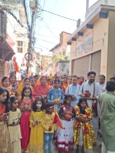 मां दुर्गा मंदिर रायगंज गाज़ीपुर के मंदिर जीर्णोद्धार, मूर्ति स्थापना, *कलश यात्रा* आज रायगंज मंदिर से निकलकर लाल दरवाजा कोतवाली होते हुए आमघाट झुंनू लाल चौराहा, परसपुरा होते हुए पुनः मंदिर रायगंज पर आकर समाप्त हुआ जिसमें बड़ी संख्या में मुहल्ले की महिलाएं वं नागरिक उपस्थित थे, जिसमें प्रमुख रूप से पंडित श्री कृष्ण मुरारी पाठक “मुन्ना जी,” श्री अजय अग्रवाल “पप्पू बाबू”, व्यापार मंडल जिला अध्यक्ष श्री प्रकाश केसरी “गुड्डू जी”, गोपाल जी वर्मा, मोहन जी गुप्ता, गणेश गुप्ता राजकुमार वर्मा, गोपाल जी पाठक, विनोद वर्मा, कुंवर बहादुर सिंह काकू, रिशु पाठक, आशीष सिंह, सोनू विश्वकर्मा, पारस केशरी,आदि प्रमुख रूप से उपस्थित रहे,