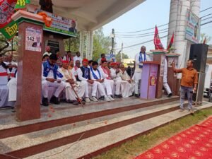 कार्यक्रम की शुरुआत समाजवादी सांस्कृतिक प्रकोष्ठ के जिलाध्यक्ष रजनीकांत और उनके साथियों ने समाजवादी गीत से किया।