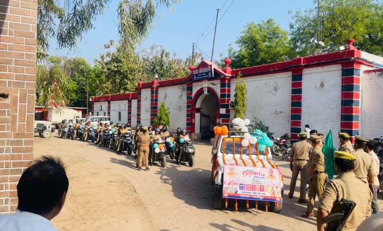 * गाजीपुर।महिलाओं एवं बालिकाओं की सुरक्षा, सम्मान एवं सशक्तिकरण के उद्देश्य से संचालित मिशन शक्ति 5.0 (द्वितीय चरण) अभियान के अंतर्गत आज जनपद गाजीपुर में महिला सुरक्षा जागरूकता हेतु एक भव्य बाइक रैली का आयोजन किया गया, बाइक रैली का शुभारंभ श्रीमान अपर पुलिस अधीक्षक ग्रामीण श्री अतुल कुमार सोनकर द्वारा थाना कोतवाली परिसर से हरी झंडी दिखाकर किया गया, उक्त बाइक रैली थाना कोतवाली से प्रारंभ होकर रेलवे स्टेशन गाजीपुर सिटी, लंका चौराहा, विकास भवन से पीजी कॉलेज चौराहा होते हुए पुलिस लाइन्स परिसर गाजीपुर तक निकाली गई।