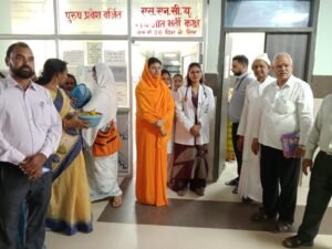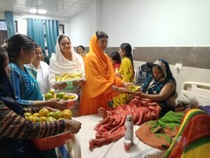 *मानव उत्थान सेवा समिति श्री हंस योग आश्रम के तत्वावधान मातृ दिवस पर महाराज सतपाल जी की माता श्री राजराजेश्वरी देवी के जन्मोत्सव पर जिला महिला अस्पताल की डॉक्टर ममता सिंह व महात्मा दयावती बाई जी के नेतृत्व में मरीजों को फल वितरण*।* **सेवा से ही व्यक्ति महान बनता है —दयावती बाई। *गुरु दरबार की सेवा कभी भी विफल नहीं —-ठाकुर दास बाबा*