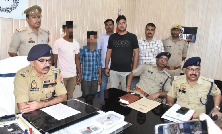 गाजीपुर 8 सितंबरपुलिस अधीक्षक के आदेश के क्रम में अपराध एवं अपराधियों के विरुद्ध चलाये जा रहे अभियान के तहत् अपर पुलिस अधीक्षक नगर के कुशल मार्गदर्शन तथा क्षेत्राधिकारी नगर के निकट पर्यवेक्षण में नगर पंचायत जंगीपुर गाजीपुर के पूर्व चेयरमैन प्रतिनिधि लालजी गुप्ता को 20 लाख रूपये की मोबाइल व्हाट्सप के माध्यम से रंगदारी मांगने वाले *02 नफर शातिर अपराधी तथा 01 नफर बाल अपचारी* को पकडने मे सफलता प्राप्त की । ज्ञातव्य है कि दिनांक 31.08.2023 को लालजी गुप्ता उपरोक्त की सूचना पर *पंजीकृत मु0अ0सं0 132/2023 धारा 387, 504, 506 भादवि* बनाम अज्ञात की विवेचना के क्रम में स्थानीय पुलिस/विवेचक तथा जनपदीय स्वाट/सर्विलांस टीम की सहयोग से घटना का सफल अनावरण करते हुए रंगदारी माँगने वाले अभियुक्तगण 1. सुनील उर्फ सोनू यादव पुत्र राजेश यादव निवासी ग्राम जमसडा थाना दुल्लहपुर जनपद गाजीपुर 2. गोलू यादव पुत्र दीना यादव निवासी कृष्णा नगर वार्ड नं0 08 अहिरपुरवा थाना जंगीपुर जनपद गाजीपुर 3. काल्पनिक नाम सोनू (बाल अपचारी) को आज दिनांक 08.09.2023 को अभियुक्त गोलू यादव के मकान से गिरफ्तार करते हुए घटना मे प्रयुक्त मोबाइल एवं अभियुक्त सुनील उर्फ सोनू यादव के पास से 01अदद देशी तमन्चा 0.315 बोर व एक जिन्दा कारतूस 0.315 बोर बरामद किया गया विवेचना / पूछताछ के क्रम में एक व्यक्ति जिसका नाम विवेक सिंह उर्फ करिया सिंह पुत्र अनिल सिंह उर्फ मुन्ना बजरंगी निवासी ग्राम सोनहरा, दुल्लहपुर, गाज़ीपुर का नाम प्रकाश में आया है गिरफ्तारशुदा अभियुक्त के विरूद्द विधिक कार्यवाही की जा रही है ।