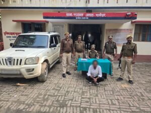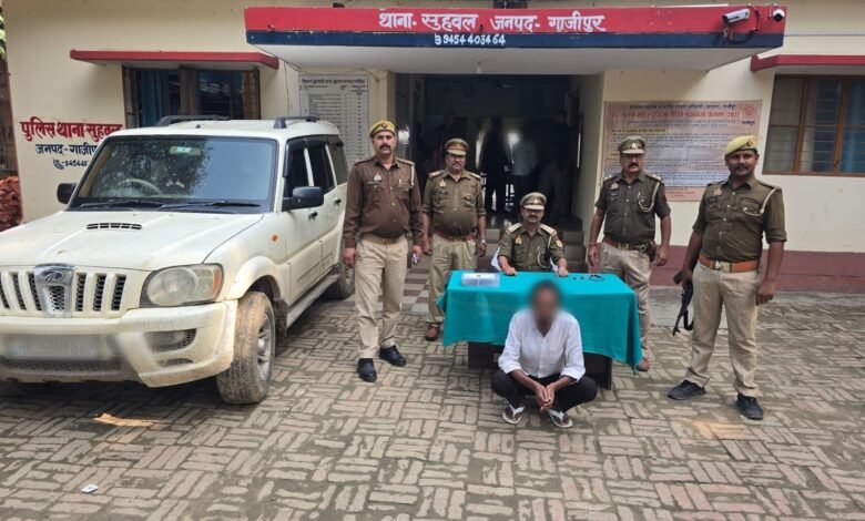 गाज़ीपुर।अपराध एवं अपराधियो के विरुद्ध चलाये जा रहे अभियान के तहत दिनांक 02.11..2025 को उ0नि0 भोलानाथ सरोज मय हमराह के देखभाल क्षेत्र चेकिंग वाहन, संदिग्ध व्यक्ति में मामूर थे कि मुखबीर खास की सूचना पर घेराबन्दी कर एक स्कार्पियो को रोका गया । संदिग्ध व्यक्ति से उसका नाम पता पूछते हुए नियमानुसार उसका नाम व जामा तलाशी ली गयी तो उसने अपना नाम शहबाज खान पुत्र स्व0 सरफराज खान उम्र लगभग 34 वर्ष निवासी ग्रा0 रमवल थाना सुहवल जनपद गाजीपुर बताया तथा तलाशी में *एक अदद तमंचा .315 बोर, एक अदद जिन्दा कारतूस .315 बोर* बरामद हुआ । उक्त अभियुक्त को कारण गिरफ्तारी बता कर गिरफ्तार किया गया । बरामदगी के आधार पर थाना स्थानीय पर *मु0अ0सं0 115/25 धारा 3/25 आर्म्स एक्ट* का अभियोग पंजीकृत किया गया। । अभियुक्त के विरुद्ध अन्य विधिक कार्यवाही प्रचलित है ।