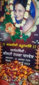 *मनायी गयी श्रीमती रंजना पांडेय की पहली पुण्यतिथि, भावभीनी पुष्पांजलि/श्रद्धांजलि समारोहके रूप में **