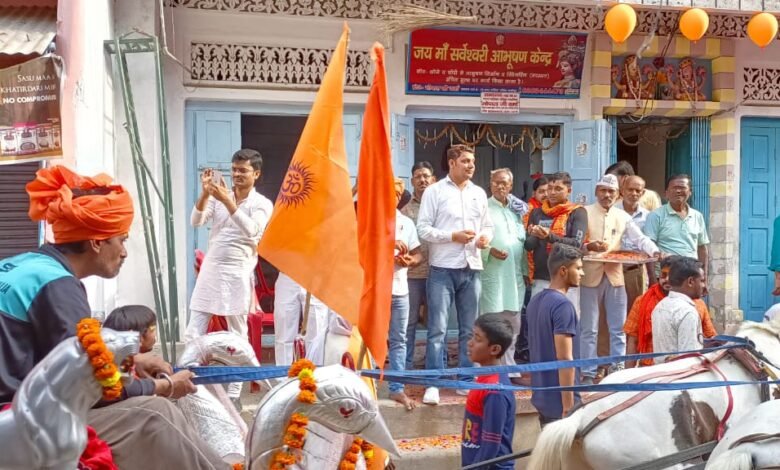 आप पार्टी के जिलाध्यक्ष विवेक राय शोभायात्रा में रामभक्तों का किया स्वागत