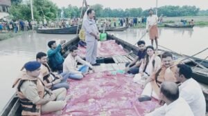 मंत्री रविंद्र जायसवाल ने नाव से बाढ़ प्रभावित गांवो का किया निरीक्षण,लोगों को बांटी राहत किट**