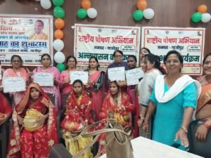 उन्होंने बताया कि इस कार्यक्रम में नगर पालिका अध्यक्ष सरिता अग्रवाल विशिष्ट अतिथि प्रदीप पाठक और मुख्य विकास अधिकारी के द्वारा पांच गर्भवती महिलाएं और पांच बच्चों का अन्नप्राशन करा कर राष्ट्रीय पोषण माह का शुभारंभ किया गया। इस दौरान विभाग के द्वारा चलने वाले विभिन्न गतिविधियों में बेहतर काम करने वाली आंगनबाड़ियों को प्रशस्ति पत्र देकर सम्मानित भी किया गया।