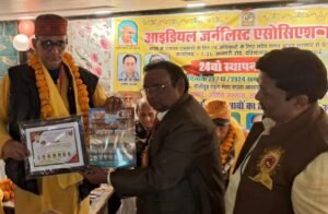राष्ट्रीय अध्यक्ष डा. प्रमोद वाचस्पति ने कहा कि कवि इन्द्रजीत तिवारी निर्भीक 1989 से अब तक लगभग तीन हजार विभिन्न साहित्यिक, सांस्कृतिक, बौद्धिक आयोजनों का संयोजन, संचालन कर चुके हैं।अब तक सोलह साहित्यिक – सांस्कृतिक संग्रहों का संपादन के साथ -साथ लगभग डेढ़ दर्जन पत्र/ पत्रिकाओं चैनलों से जुड़कर मानव समाज के हितार्थ समर्पित हैं। अर्ध शतक के करीब अनेकों संगठनों से जुड़कर चौबीस घंटे अपने आपको मानव समाज के लिए समर्पित रहना। स्वयं एक योगी की तरह अपने घर परिवार से अधिकांश समय विमुख रहकर सदैव मानव हितार्थ तत्परभाव को दृष्टिगत रखते हुए आज आइडियल जर्नलिस्ट एसोसिएशन परिवार ने अति विशिष्ट रचनाकार सम्मान भेंट किया है। समय-समय पर अनेकों लोगों द्वारा कवि इन्द्रजीत तिवारी निर्भीक को मानसिक प्रताड़ना भी दिया जाता है। उसके बावजूद इनके द्वारा – नर हो न निराश करो मन को,जग में रहकर कुछ नाम करो, कुछ काम करो की दृढ़ इच्छा शक्ति के भाव वाले व्यक्तित्व काआज हमलोगों ने सम्मान किया है। संचालन आइडियल जर्नलिस्ट एसोसिएशन के मुख्य राष्ट्रीय महासचिव संजय पाण्डेय सरस, स्वागत संबोधन काशी हिन्दी विद्यापीठ के कुलाधिपति कवि सुखमंगल सिंह, वरिष्ठ पत्रकार डॉ. वेदप्रकाश श्रीवास्तव धन्यवाद आभार श्रीप्रकाश कुमार श्रीवास्तव गणेश एवं भूपेन्द्र अग्रहरी ने संयुक्त रूप से किया।